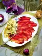 Carefully spread radish salad and 2 egg quarters around the dumplings. Place 1 knife point of trout caviar on each egg quarter and sprinkle with ground pepper.