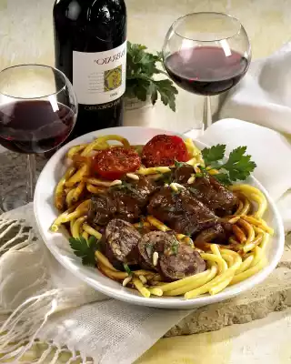 Cover and stew for about 2 hours. Stir the sauce thickener into the braising stock, bring to the boil again briefly and season with salt and pepper. Place the macaroni in plenty of boiling salted water and cook for about 8 minutes until bubbly.