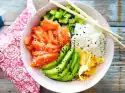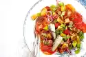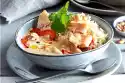 Arrange all prepared ingredients with coconut chips in bowls. Serve with sauce.