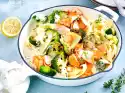 Put quinoa in a sieve, rinse and drain. Bring about 400 ml of salted water to the boil, stir in quinoa and simmer at low heat for about 15 minutes. Heat 2 tablespoons of oil in a frying pan. Fry the sweet potatoes for 6-8 minutes while turning. Season with salt and pepper. Blanch the pointed cabbage briefly in boiling salted water, drain and rinse with cold water. Stir in parsley. Loosen the quinoa with a fork.