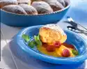 Heat frying oil to approx. 160 °C. Form 12 balls from the dough with floured hands and bake in hot oil for 4-5 minutes until brown. Put 50 g sugar on a plate. Take out the finished balls, let them drip off on kitchen paper, turn them in the sugar, let them cool down a bit and serve them