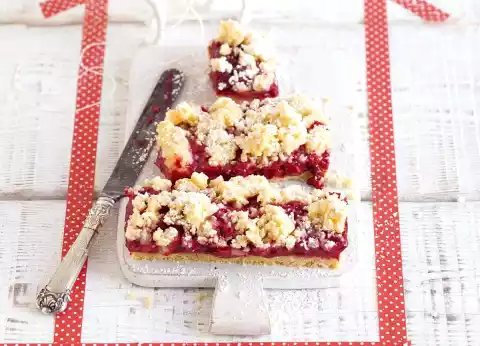Spread the filling over the pre-baked base. Spread crumbles on top. Bake in a hot oven at the same temperature for about 30 minutes.