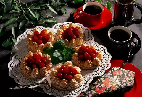 Remove the aluminium foil five minutes before the end of the baking time. Let the bases cool down. Wash the raspberries and carefully dab dry. Warm up the raspberry jelly at low heat. Add raspberries and season with port wine.