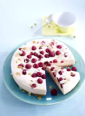 Squeeze the gelatine and dissolve. Stir in 3-4 tablespoons of melon cream, stir into the rest of the melon cream, chill. As soon as the mixture begins to gel, whip the cream until stiff and fold in. Pour the mixture onto the base. Select the raspberries and spread on top. Chill for at least 4 hours, preferably overnight. Roast the almond flakes in a pan without fat until golden brown, remove. Sprinkle cake with almond flakes