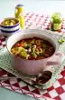 Line a baking tray (inside dimensions 24 x 36 cm) with baking paper and spread a thin layer of oil on it. Beat the egg white with the whisk of the hand mixer until stiff. Add 100 g sugar and continue beating for a few minutes. Mix 75 g sugar, 1 packet vanilla sugar and starch. Add the vinegar to the egg white mixture and continue beating until the mixture is very firm and shiny