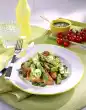 Cut a base into 8 cake pieces. Cut a circle (approx. 16 cm Ø) out of the 2nd cake base. Cut the rest into approx. 3 cm wide strips. Line a round bowl (approx. 20 cm Ø) with foil. Line with the cake pieces. Finish with sponge cake strips on the upper edge. Heat the jelly and spread on the sponge cake