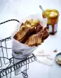 In the meantime, separate the eggs for the sponge cake. Beat the egg whites and 3 tbsp. water until stiff, adding 100 g sugar. Stir in egg yolks. Mix 75 g flour, starch and baking powder, sieve onto the egg foam and fold in carefully. Put the mixture on a baking tray (approx. 32 x 38 cm) lined with baking paper and smooth it down. Bake in the preheated oven (electric cooker: 200 °C/ convection oven: 175 °C/ gas: level 3) for 8-10 minutes. Take out the sponge cake and turn out on a damp tea towel sprinkled with sugar. Carefully peel off the baking paper and beat the moist cloth over the edges of the dough. Let the sponge cake cool down.