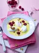 Raspberries selected. Heat 1 tablespoon of oil in a frying pan. Pour about 1/4 of the dough into 4 small heaps. Cover each with 3-4 raspberries and bake at medium heat for about 10 minutes. Place the pancakes on a baking tray lined with baking paper and bake in a preheated oven (electric cooker: 150 °C/ convection oven: 125 °C/ gas: see