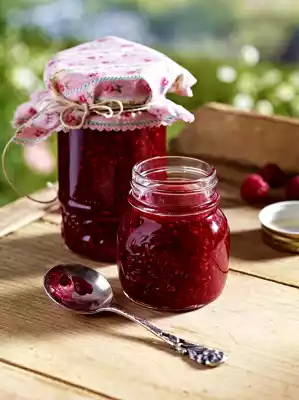 Raspberries selected. Bring sugar, lemon juice and raspberries to the boil and simmer for about 3 minutes according to the instructions on the packet. Mash the raspberries with a potato masher. Immediately pour into clean glasses with twist-off lid. Place glasses on the lid, turn them over again after 5 minutes and let them cool down