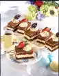 Separate eggs, beat egg whites until stiff. Add 100 g sugar and salt and let it trickle in. Fold in egg yolk. Mix flour, starch and baking powder, sieve over the egg mixture, add 80 g brittle and fold in. Line the bottom of a springform pan (26 cm Ø) with baking paper. Fill in sponge cake mixture and smooth it down. Bake in the preheated oven (electric range: 200 °C/ convection oven: 175 °C/ gas: level 3) for 20-25 minutes.