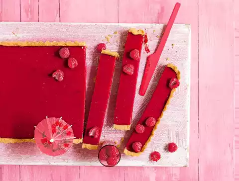Simmer for about 1 minute while stirring. Remove the pot from the stove. Stir in 200 g butter in small pieces with a whisk until the butter has melted. Pour immediately into the shortcrust pastry.