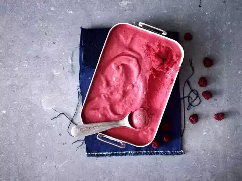 Place in a bowl and allow to freeze for about 1 hour. Stir well with a whisk. Beat the egg white until stiff. Carefully fold into the frozen mixture. Stir again every 30 minutes for approx. 4 hours until a portionable sorbet is formed