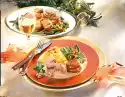 Puree the raspberries, except for a few for decoration. Season to taste with 2-3 tablespoons of sugar. Heat 3 tablespoons of puree. Squeeze 2 sheets of gelatine and dissolve in it. Stir into the rest of the puree. Chill for about 15 minutes.