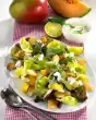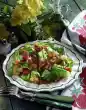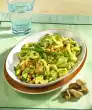 Clean and wash the lamb's lettuce and chicory. Cut chicory into thick slices. Mix both loosely with the red cabbage and arrange with the cream cheese noodles. Sprinkle with nuts and croutons