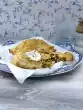 Divide the dough into 4 portions. Roll out one portion on a floured work surface to a very thin oval (approx. 25 x 30 cm) and place on a baking tray lined with baking paper. Spread the dough with 30 g crème fraîche.