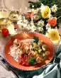 Simmer over medium heat for 5-7 minutes. Stir in curry paste. Season to taste with fish sauce, sugar, salt and possibly lemon juice. Simmer for another five minutes. Wash the basil. Remove the leaves and cut into fine strips. Sprinkle over the chicken curry. Basmati rice tastes good with it