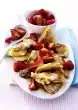 Put Kaiserschmarrn on a baking tray, divide into large pieces with the help of 2 forks and keep warm. Bake the rest of the dough in the same way. Arrange the cream in a bowl and decorate with blackberries. Decorate the pancake with the remaining currants.