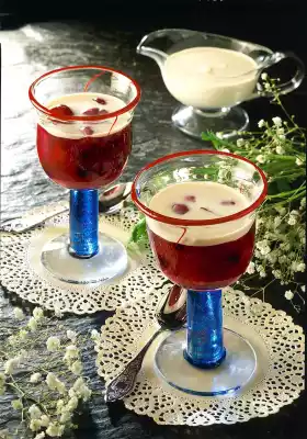 Stir starch in a little cold water until smooth and bind the fruit with it. Bring to the boil briefly and remove the lemon peel. Let the fruit grits cool down a little and fill them into glasses or bowls.