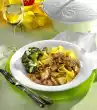 Cover and cook for about 1 hour. Clean, wash and cut the leek into rings. Add during the last 15 minutes. Wash, pluck, halve and core the grapes. Add to goulash 15 minutes before the end of cooking time.