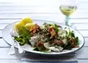 Roughly chop the nuts. Drain beetroot, capers and herrings. Peel onion. Peel and core the apple. Dice everything very finely. Wash the chives and cut into small rolls.