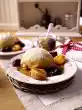Add salami, parsley and pear wedges to the stew about 5 minutes before the end of the cooking time. Finish cooking the stew, season with vinegar, salt and pepper.