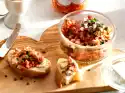 Remove the peppers, cover with a damp kitchen towel and allow to cool. Carefully peel the skin. Dice the bell peppers finely.