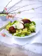 In the meantime, finely mash the oysters in the stock and season with vinegar, salt, pepper and coriander. Arrange the fish with the dressing on plates and serve garnished with lemon and fresh coriander green.
