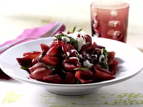 Pour into a sieve, drain well. Pour the pasta into a sieve, quench and drain well. Drain the beetroot in a sieve, catching the juice. Measure out 100 ml of juice. Wash the rosemary, shake dry and pluck the needles from the twigs.
