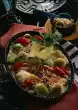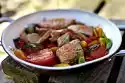 Peel and finely dice the onion and garlic. Wash the cherry tomatoes and cut into slices. Cut soft tomatoes into short strips. Heat 2 tbsp. oil, fry onion and garlic lightly for about 10 minutes.