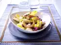Bind with sauce thickener. Arrange the fish on the vegetables and pour the sauce over them. Garnish with chervil. Add potatoes.