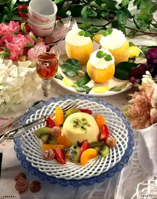 Cut a lid off 4 lemons. Cut the lemons slightly flat at the bottom. Carefully remove the pulp and press it through a cloth. Wash 1 lemon and finely grate the peel. Cook 350 ml water and 125 g sugar for about 5 minutes until bubbly. Add lemon juice and zest and bring to the boil briefly.