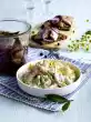 Add fish, onions, apples and cucumbers to the sauce. Leave everything to stand for an hour. Wash the chives and cut into small rolls and fold in. Serve the herring tip with brown bread and butter curls. Garnish with salad
