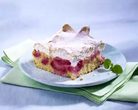 Put the dough on a greased fat pan and smooth it down. Spread rhubarb evenly on top. Bake in the preheated oven (electric cooker: 175 °C/ convection oven: 150 °C/ gas: level 2) for approx. 25 minutes