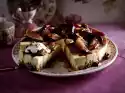 Place the whipped zabaglione in a water bath with cold water and ice cubes and beat completely cold. Whip cream until stiff and fold in. Serve with rhubarb groats.
