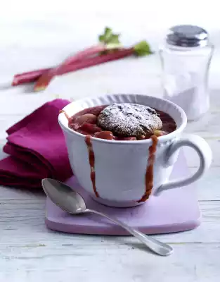 juice until smooth and thicken rhubarb. Pour into a bowl and let it cool down. Arrange cooled compote and cookies in cups. Dust with icing sugar