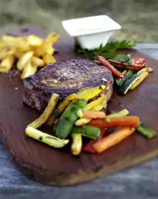 Heat the olive oil. Stir-fry the vegetables for 2-3 minutes at high heat. Season with salt, pepper and Cajun. Stir in parsley. Serve steaks with vegetables and herb butter. Curvers (u-shaped French fries) taste good with them.
