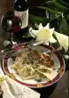 Drain the pasta and let it drain well. Mix immediately with the sauce and serve. Sprinkle with pine nuts and the remaining parsley