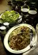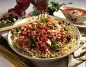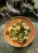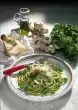 Cook the pasta in boiling salted water for about 8 minutes, then drain. In the meantime clean and wash the peppers and cut them into bite-sized pieces. Wash the turkey filet, dab dry and cut into slices. Peel garlic, press through a garlic press. Heat olive oil. Sauté garlic in it. Fry turkey meat until golden brown, season with salt and pepper, remove.