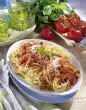 Drain the pasta and serve with the sauce. Sprinkle with parmesan. Garnish with parsley