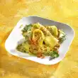 Season to taste with salt and pepper. Meanwhile cook the noodles in boiling salted water for about 10 minutes. Add peas for the last 5 minutes. Wash parsley, dab dry and chop finely. Drain noodles and mix with the sauce. Fold in parsley. Arrange on plates and garnish with parsley. Serve with fresh Parmesan cheese