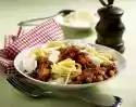 Drain the pasta, let it drain and put it back into the pot with the spinach. Add the sauce and meat immediately. Season to taste with salt and pepper and serve.