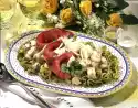 Arrange noodles and sauce on plates and serve garnished with pepper to taste, lemon wheels and dill.