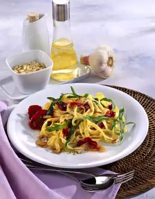 Arrange on plates and serve garnished with dried tomatoes as desired.