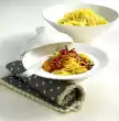 Season to taste with salt, pepper and sugar. Let it cool down a little bit. Clean, wash and drain the rocket. Drain the pasta, rinse with cold water and put it back into the pot. Add the rocket and vinaigrette to the pasta and mix everything together.