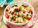 Clean and wash spring onions and cut them into fine pieces. Wash the thyme and remove the leaves from the stems. Heat the oil. Press sausage meat directly from the skin as small balls into the oil. Add spring onions and thyme.
