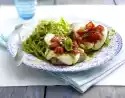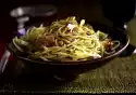 Drain pasta and carrots and arrange on plates. Pour a little pesto on top. Arrange meat on top. Garnish with peanuts and rocket. Add the rest of the pesto.