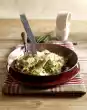Deglaze with stock, bring to the boil. Cover and simmer for about 8 minutes. Meanwhile cook the noodles in plenty of boiling salted water for about 8 minutes until al dente. Then drain. Drain the vegetables.