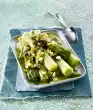 Drain the artichoke bottoms and let them drain well. Wash, drain, quarter and seed the tomatoes. Cut the quarters into cubes. Wash and clean spring onions and cut into rings. Wash basil, shake dry and pluck leaves from stems.