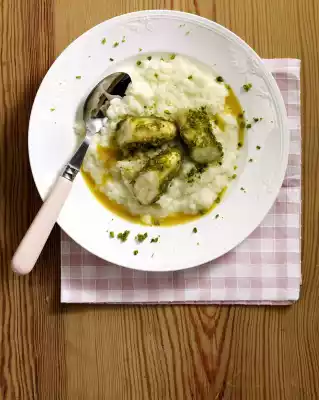 Bring the milk to the boil, remove from the stove and stir in the contents of the bag. Stir again for about 1 minute. Leave to swell for 10 minutes. Peel bananas. Heat butter in a pan. Sauté the bananas briefly.