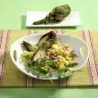 Wash the grapes and drain well. Pluck from the panicles and cut in half. Mix rice pudding and yoghurt and fill into a bowl. Arrange the grapes on top. Dust with cinnamon